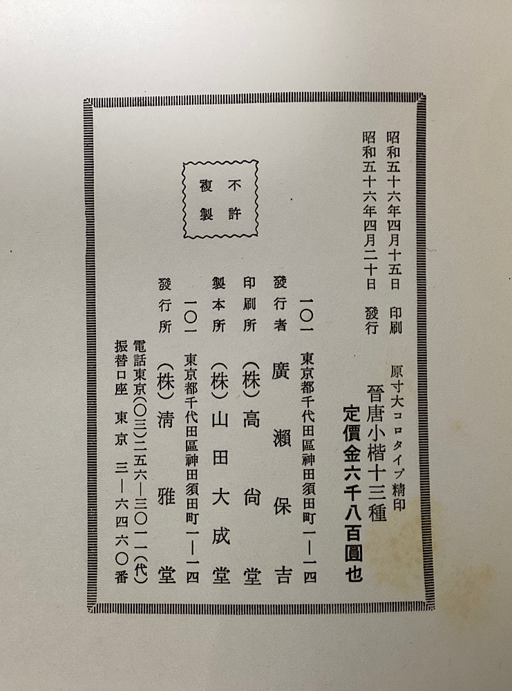 「晋唐小楷十三種 原寸大コロタイプ精印」を買取ります!